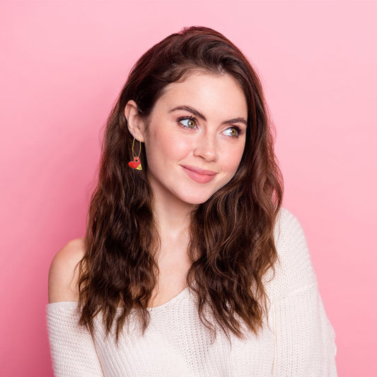 Orecchini ad anelle in Ceramica - Cuore rosso e oro