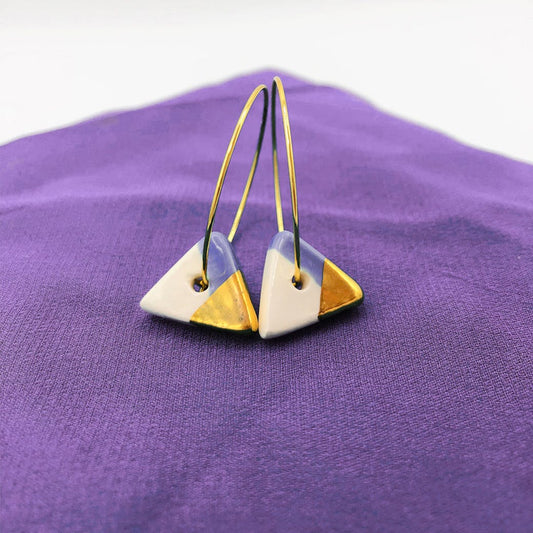 Orecchini ad anelle in Ceramica - Triangolo lilla e oro