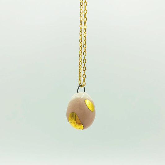 Ciondolo in ceramica - Stone ovale rosa e oro zecchino