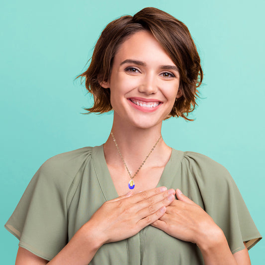 Ciondolo in Ceramica - Stone ovale azzurro e oro zecchino